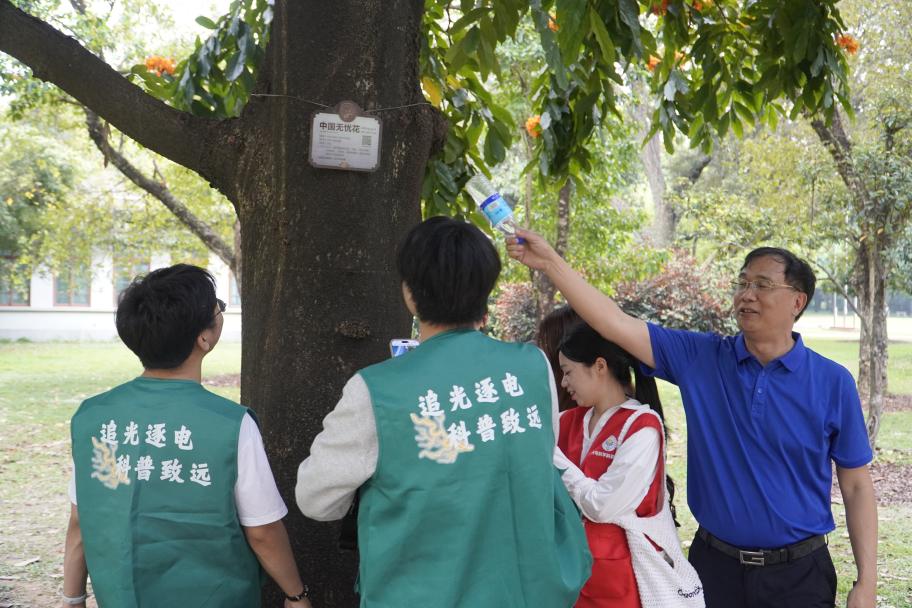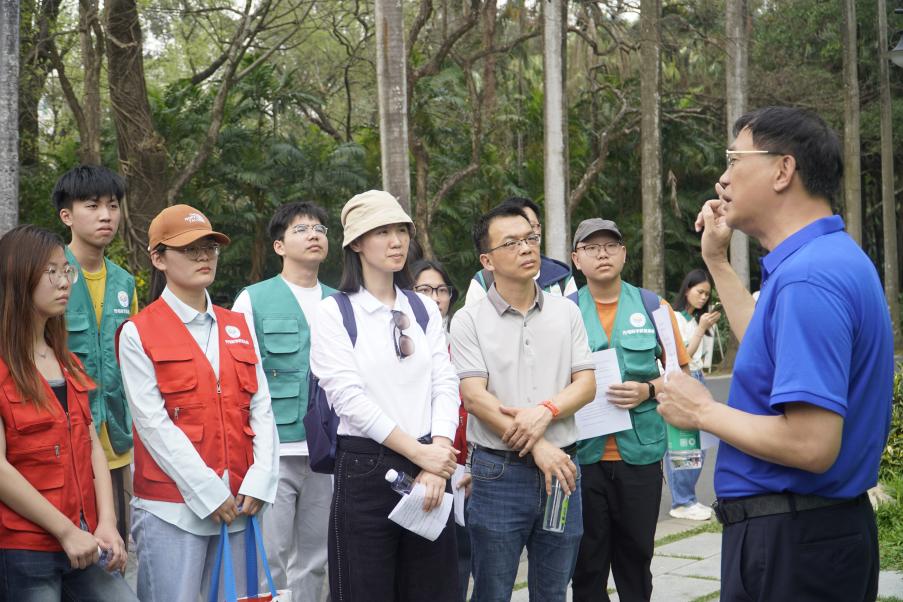 为提高科普协会会员的科普能力,增强成员科学素养,增进协会成员间的交流,3 月 19 日,我院组织光电科学科普协会成员代表及科学教育专业研究生,前往华南国家植物园开展自然导赏活动。本次活动由学院筹建小组成员谢子娟、科普协会指导老师郭健平带队,特别邀请广东省人民政府参事、华南师范大学地理科学学院教授、博士生导师徐颂军亲自到现场讲解指导,同学们在专业引领下探索自然、增进情谊,为科普工作开展汲取新灵感。